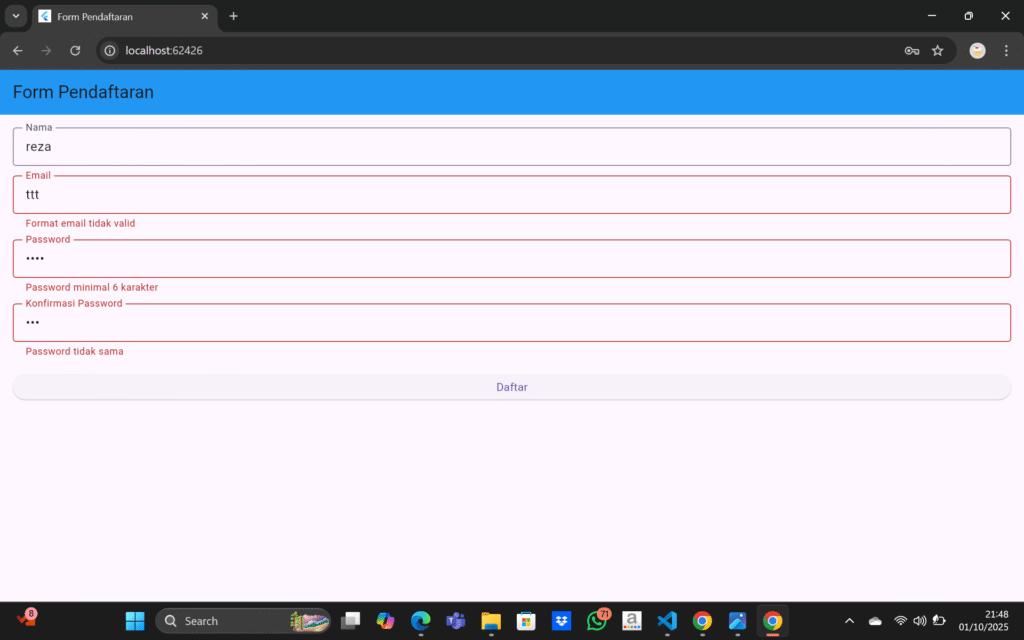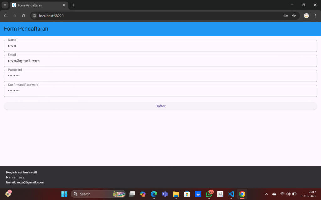 Fungsi _submitForm() dijalankan saat tombol Daftar ditekan.