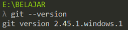 terminal menampilkan versi Git yang terpasang, yaitu 2.45.1.windows.1.