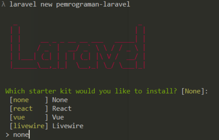 Setelah itu, buat project laravel baru. Hasilnya akan seperti berikut:
