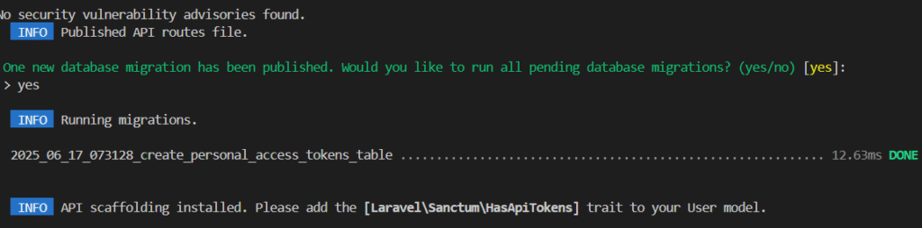 Setelah dimasukkan seperti gambar, kemudian lakukan migrasi ke database dengan command terminal berikut: