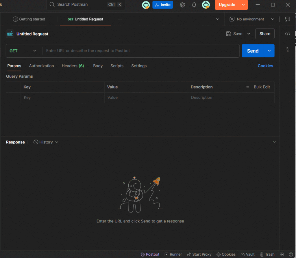 Kemudian, kita akses API yang telah kita rancang. Pertama, download POSTMAN di link: https://www.postman.com/downloads/ Setelah di install, akan seperti ini: