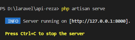 Buka web server di laravel dengan cara ketik command di terminal seperti berikut: