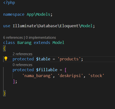 Isi model barang dengan kode berikut: